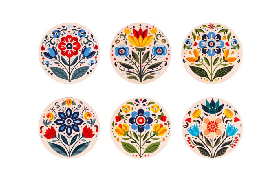 Dřevěné podtácky s motivy květin a folklóru