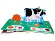Ukaž na křídlo slepice, vemeno kravičky a ucho ovečky. Na čem si pochutnává prasátko? Dokážeš pojmenovat všechno, co na obrázcích vidíš? S každou otevřenou stránkou se z obrázku zvedne jedno zvířátko. Děťátko se v tomto leporelu naučí pojmenovávat hospodářská zvířata a přiřazovat je k sobě do zvířecí rodiny. Díky zvířátkům vystupujícím z obrázků budete mít pocit, že jste se ocitli přímo uprostřed farmy, a můžete si tak se svým malým zvědavcem vyprávět spoustu příběhů o farmě a zvířatech, která v ní žijí.